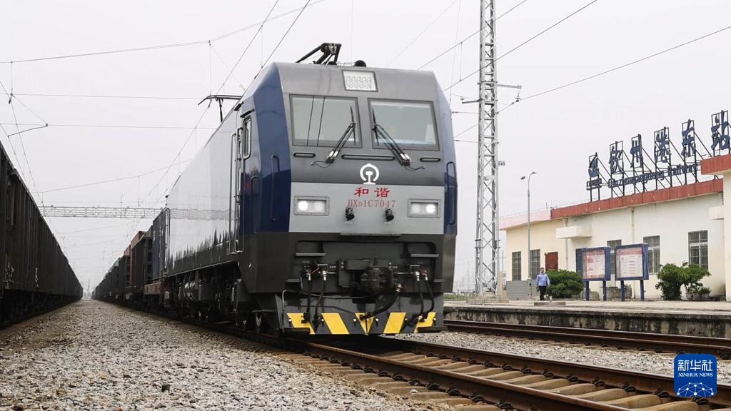9月4日,一列火車駛進欽州港東站轉運集裝箱。