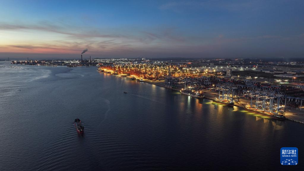 華燈初上時的欽州港(9月4日攝,無人機照片)。