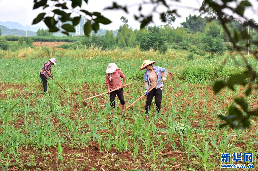 9月5日,廣西賀州市平桂區羊頭鎮大井村農民在玉米地里除草。
