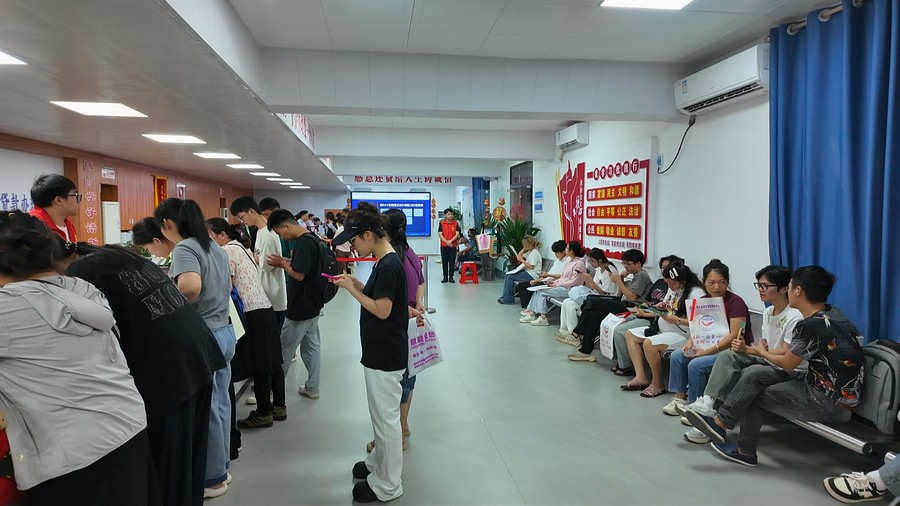 高校新生在家長的陪同下陸續到博白縣學生資助服務中心辦理助學貸款。