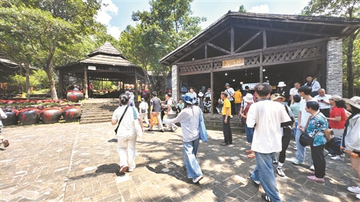 在度假區的茶園、酒坊和仙姑寨里,游客們紛至沓來,打卡留念?!皝淼竭@里,感覺像是回到了‘故鄉’,十分親切!”香港游客謝先生說。