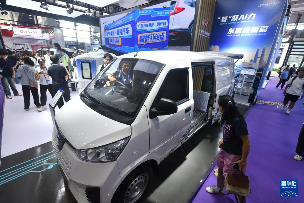 在南寧國際會展中心,觀眾參觀一款柳州產的純電動商用車(9月20日攝)。