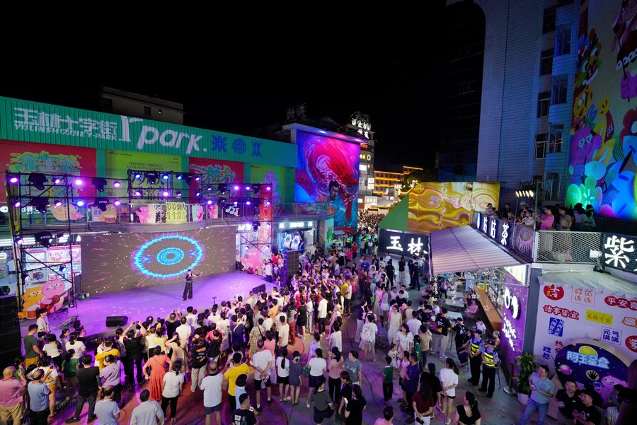 9月19日晚,玉林十字街燈火璀璨,第三屆玉林十字街城事文化藝術季啟幕。藝術季以“歲歲煙火?生生常青”為主題,包含藝術展覽、街頭演藝、商業聯動等系列活動,活動將持續到11月。