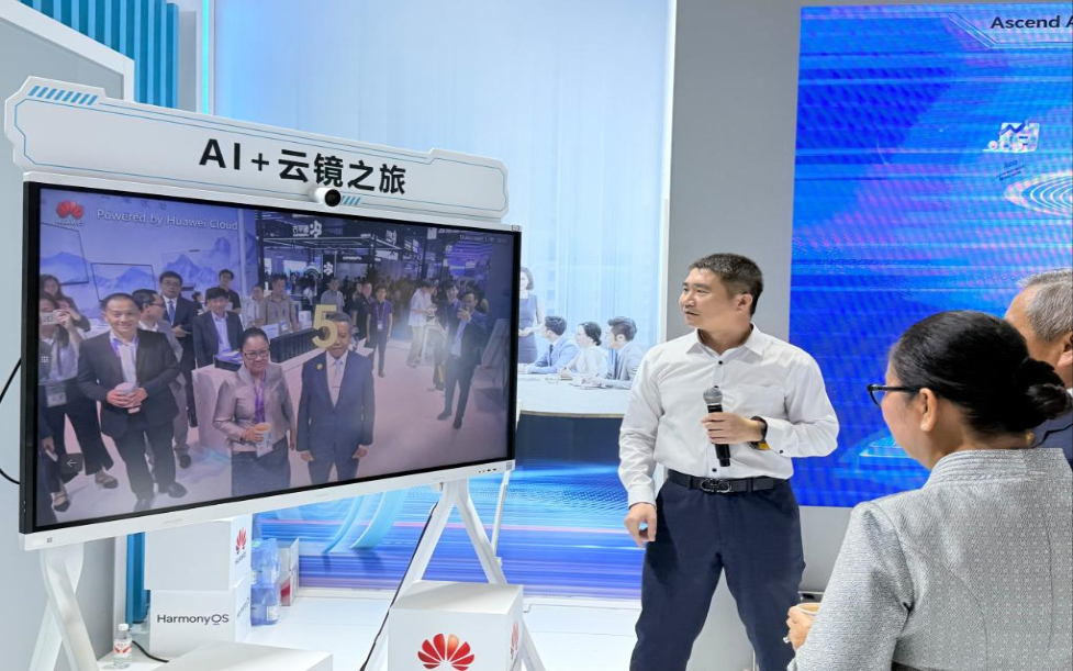 展區內的“AI+云鏡之旅”互動體驗吸引了眾多參觀者。該體驗基于華為云服務,用戶僅需拍攝一張照片,系統即可實時生成8張國內或東盟各國地標、網紅打卡點的精美照片及視頻。