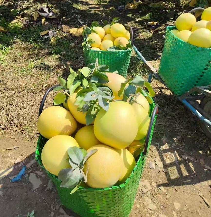 “今年氣候適宜,柚子糖度、水分都比去年好,單果也更重?!惫r周春?,F場切開一個三紅蜜柚,玫瑰色果肉晶瑩飽滿說。據介紹,今年蜜柚價格穩中有升,大果每斤可達3.5至4元,中小果也能賣到2.6元,預計產量與收入將雙雙超過去年。