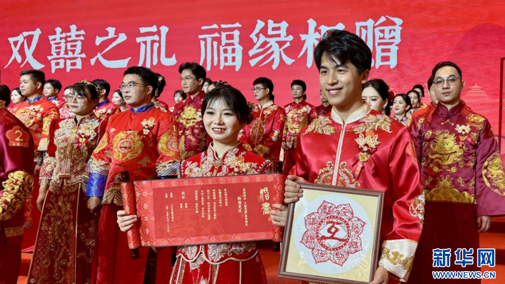儀式上,新人們共同許下愛的宣言、發出婚事新辦簡辦、反對高價彩禮,爭做中華家庭美德的傳承者、新型婚育文化的引領者、社會主義家庭文明新風尚的踐行者倡議。與會嘉賓為新人們頒發中式婚書與“八互”剪紙作品,傳遞“八互”傳統美德。