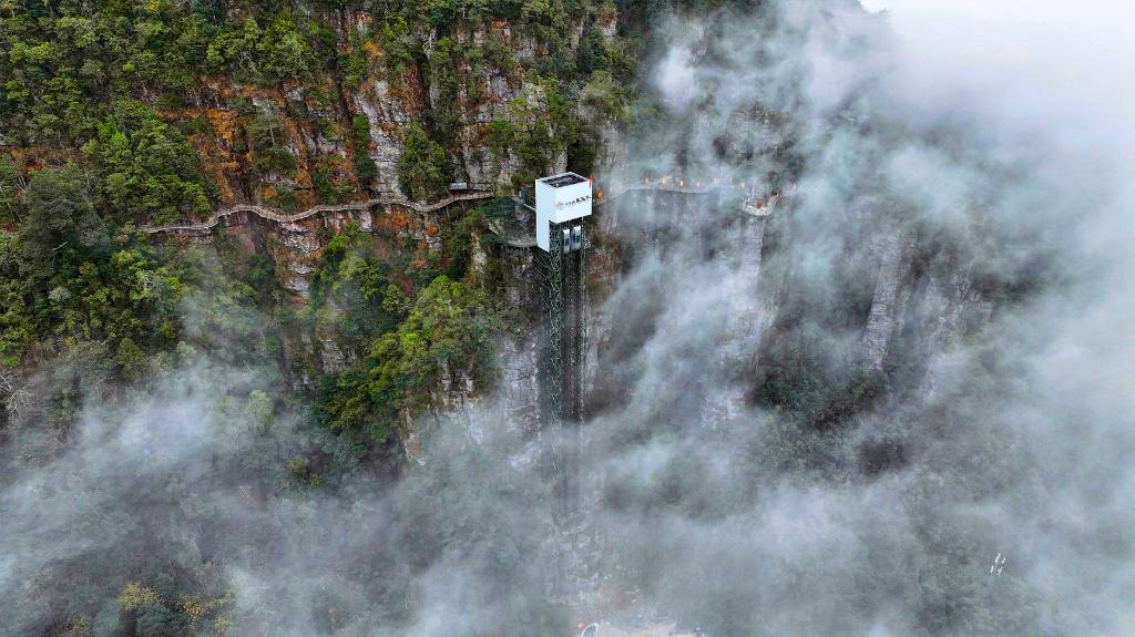 據介紹,盤王界建有1650米盤王索道、兩座百米懸崖觀光電梯和8.5公里懸崖掛壁游步道,全程零臺階,真正實現無障礙登山。