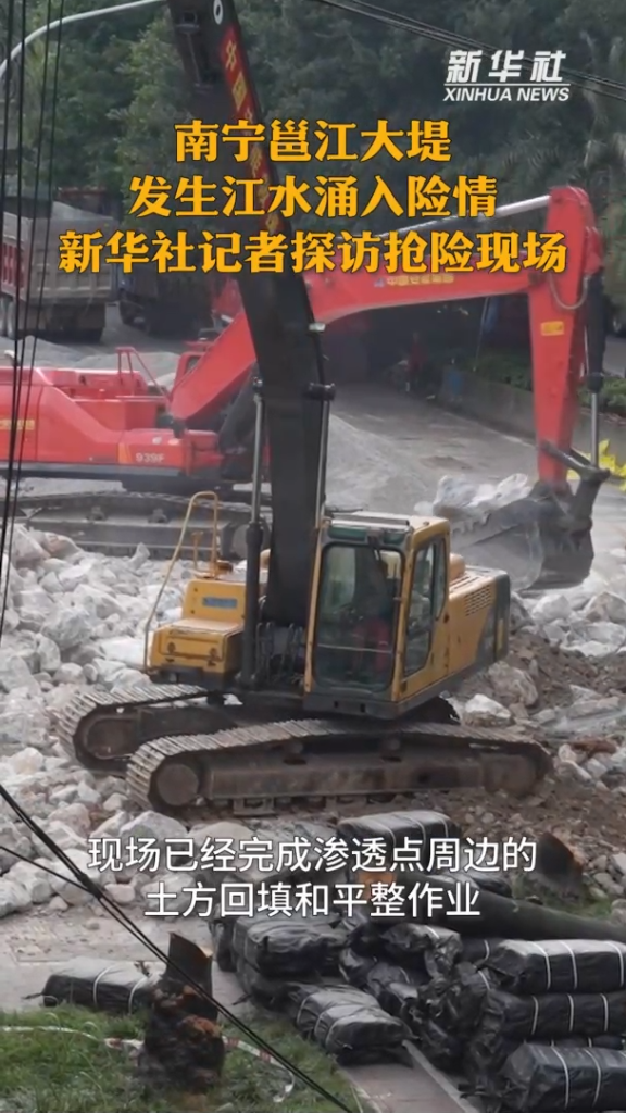 據了解,截至9日8時,廣西南寧邕江大堤內堤塌陷部分已完成初步封堵,目前正對外堤豁口進行混凝土澆筑工作。