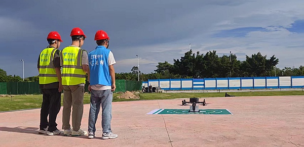 北海電信和中興公司的技術專家們正在調試無人機,控制無人機安全降落。北海電信供圖