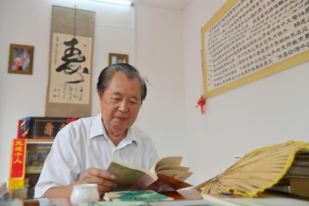 10月15日,羅伏龍在廣西巴馬瑤族自治縣縣城的家里看書。新華社記者陸波岸 攝
