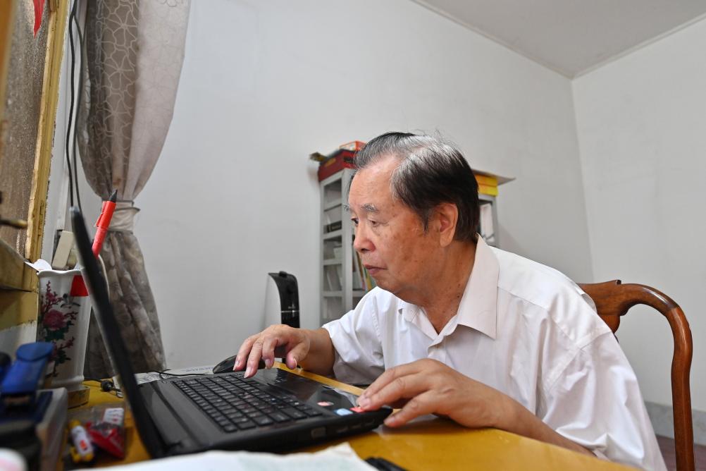 10月15日,羅伏龍在廣西巴馬瑤族自治縣縣城的家里寫作。新華社記者陸波岸 攝