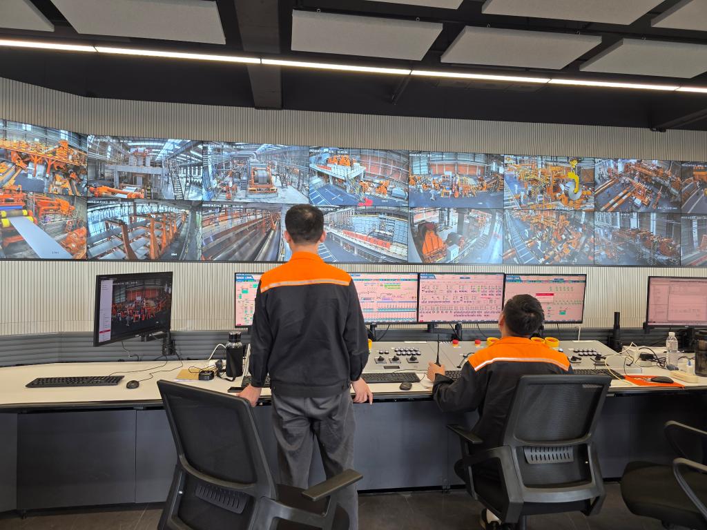 不同于傳統印象中“火花四濺、熱浪襲人”的生產場景,在這個整潔有序、高度智能化的現代車間,偌大的工廠里只有幾個工人在操作設備,中控室的巨幅屏幕上各類數據實時跳動,生產流程全貌清晰展現?!捌髽I從2021年持續推進智能化改造,引入人工智能大模型,不但生產效率高了一大截,工人們也都變成了穿戴整潔的操作員?!惫究偛猛跷妮x說。