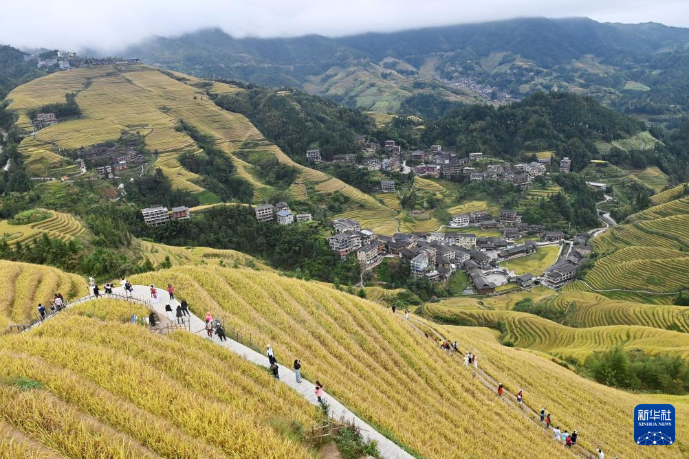 眼下,廣西龍勝各族自治縣龍脊梯田一片金黃,成為眾多游客觀光“打卡”的熱門景點。龍脊梯田已有2300多年歷史,是聯合國糧農組織認證的全球重要農業文化遺產。
