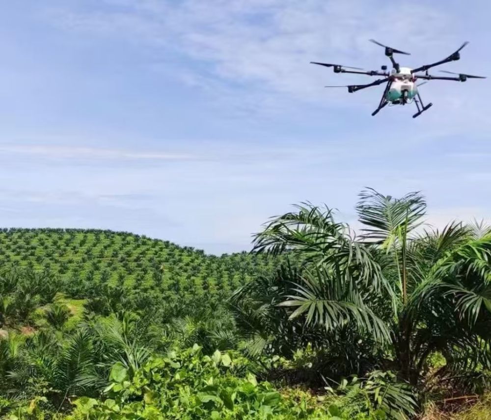 無人機在馬來西亞智慧棕櫚園開展識別作業(受訪者供圖)