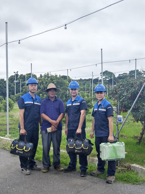 作為全國最大的荔枝產區之一,靈山長期面臨人工種植效率低、病蟲害預警不及時、果品溯源難等問題。靈山電信因地制宜,將荔枝基地納入智慧農業整體布局,打造1:1數字孿生果園。依托部署在果園內的莖流儀、環境監測站、果實傳感器等物聯網終端,果樹的“喝水”速度、“長個”進程及光照、濕度等環境參數實時采集并同步上傳。通過5G網絡回傳,果農足不出戶便可通過大鵬智能控制系統實時查看果園“健康狀態”,實現精準施肥、智能灌溉,助力傳統農業向數字化轉型。