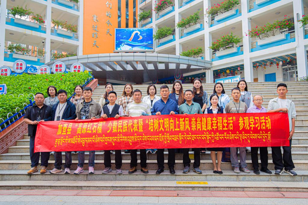 新華網南寧10月30日電(記者范超)為持續深化民族團結進步創建活動,10月29日下午,西藏山南市加查縣“高原紅石榴”少數民族代表團來到廣西南寧市濱湖路小學參觀學習。