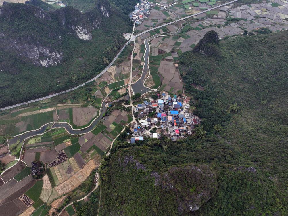 坐落在群山間的柳州市柳江區三都鎮覺山村(2025年3月20日攝)。