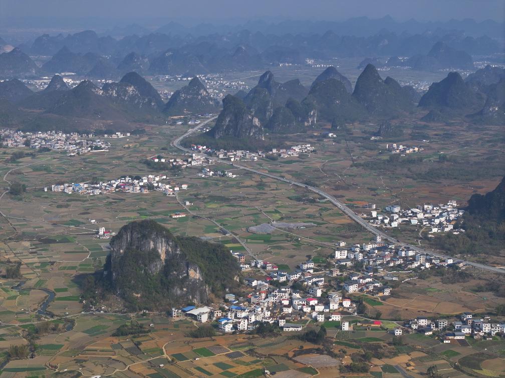 這是群山環繞的桂林市陽朔縣興坪鎮鄉村(2021年4月25日攝)。