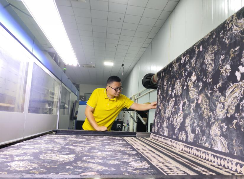 走進忻城繭絲綢產業園智能廠房,自動絡絲機正高速運轉,將絞裝絲精準轉化為筒裝絲;車間內的溫濕度傳感器實時調控環境參數,將生絲品質穩定鎖定在5A級標準。數碼印花區里,14臺高速設備組成柔性生產線,將電腦端的彩色圖案精準復刻于布匹之上,實現“所見即所得”的印花效果。