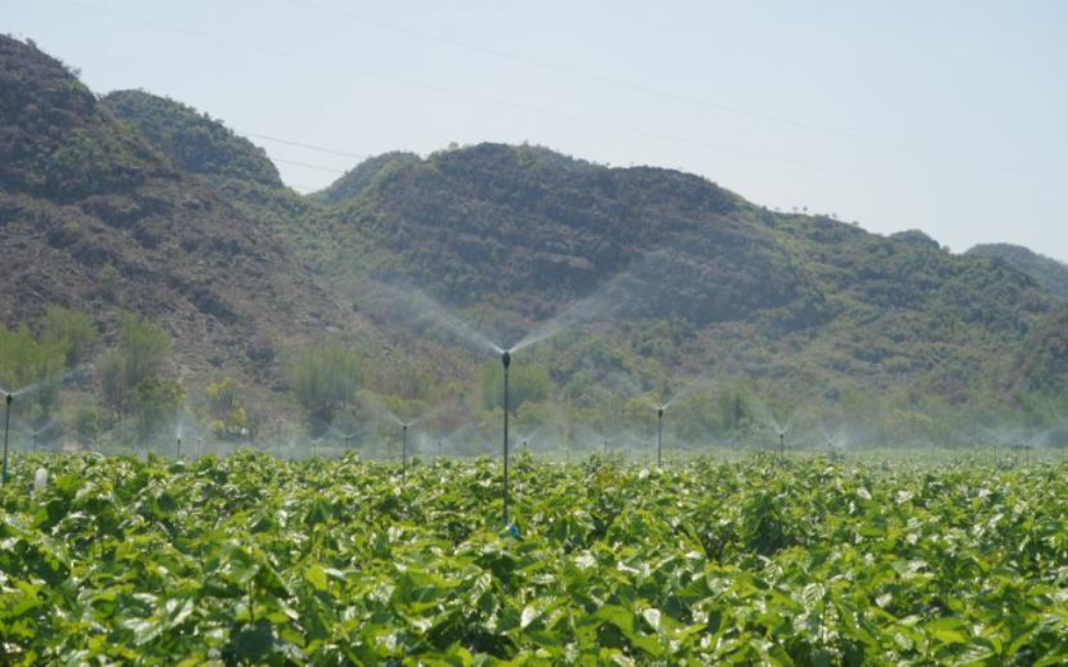 忻城縣紅渡鎮現代化桑園使用水肥一體化系統進行灌溉施肥。藍春青 攝