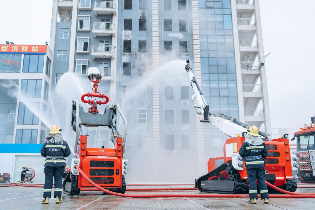 活動過程中,消防救援隊伍與民兵應急力量聯動開展消防演練,緊貼實戰場景,分別模擬居民自建房與少數民族村寨發生火災、山體滑坡導致的“斷水、斷電、斷路”等突發險情。多方救援力量迅速開展協同救援行動,運用智能接處警系統、消防無人機、滅火機器人等人工智能技術和高精尖裝備提升新質戰斗力,全面展現廣西消防“三級聯動”響應機制、跨區域應急調度能力與專業化處置水平。