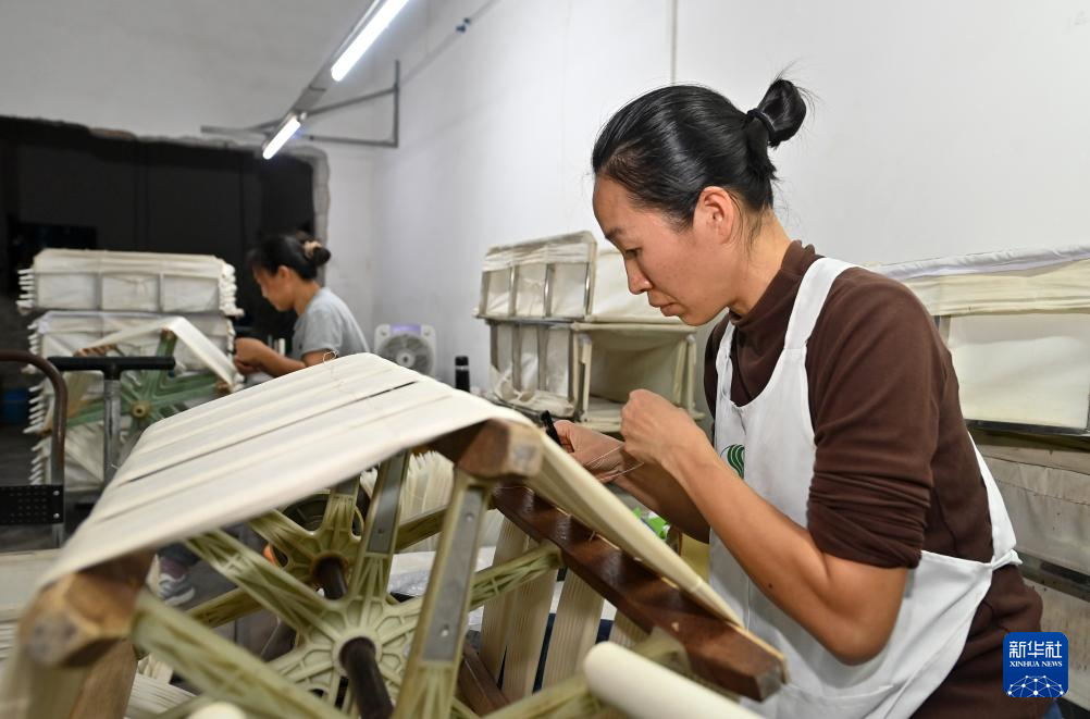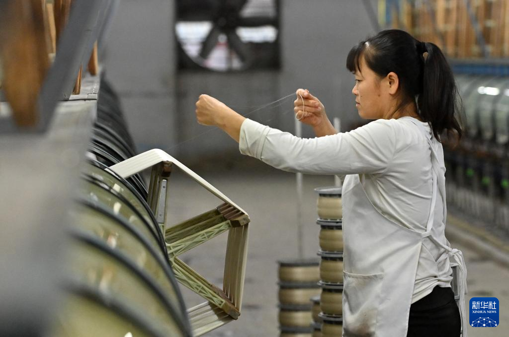 11月4日,工人在廣西忻城縣一家絲綢企業進行生產作業。
