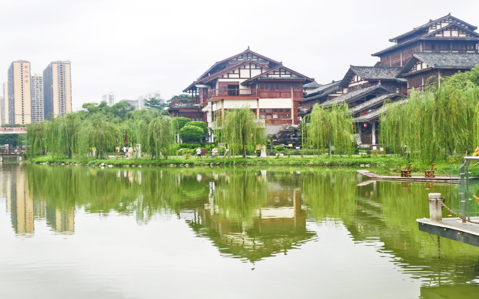 昨日南寧雨霧漸散,市民來到相思小鎮游玩。記者宋延康 攝