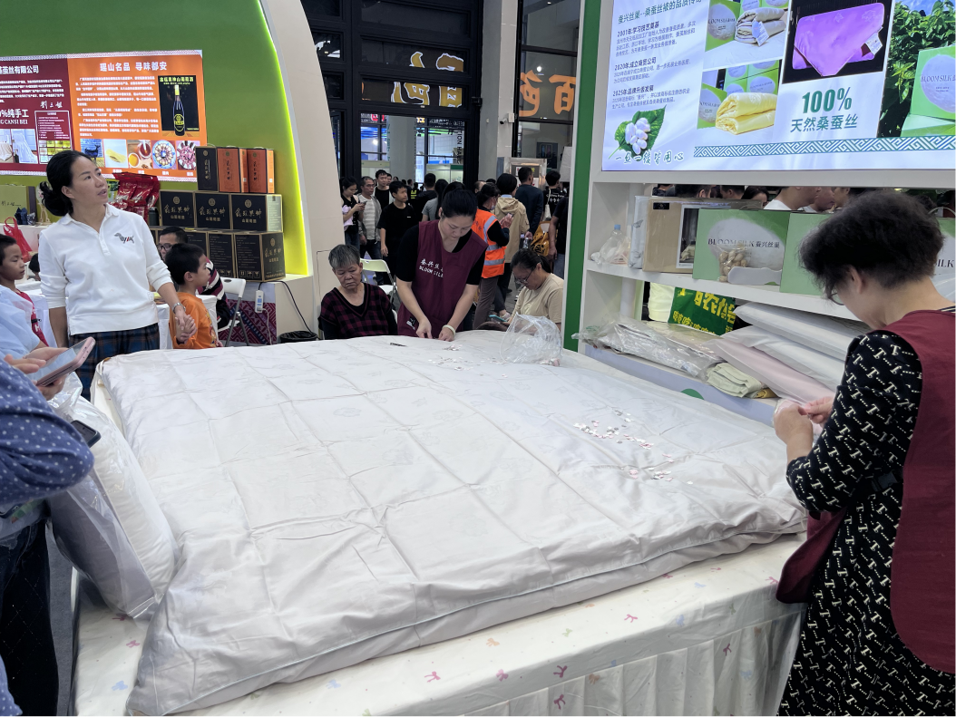 河池市還在南寧國際會展中心舉辦了特色農產品推介會。會上,6家企業代表輪番登臺,以“產品展示+技術解讀+文化賦能”的形式,圍繞“南方絲巢”真絲壯錦服飾等系列絲綢產品、優質山茶油、高活性靈芝孢子油、營養豐富的火麻食品等特色產品展開推介。