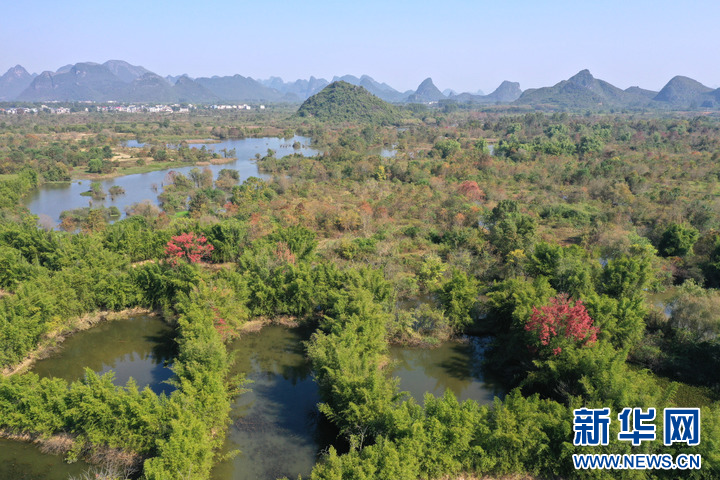 會仙喀斯特國家濕地公園的生態修復工程,穩定了濕地的生態系統功能,保護和改善了生物棲息環境,物種豐富度持續提升。截至目前,濕地公園鳥類增至173種、植物增至328種。