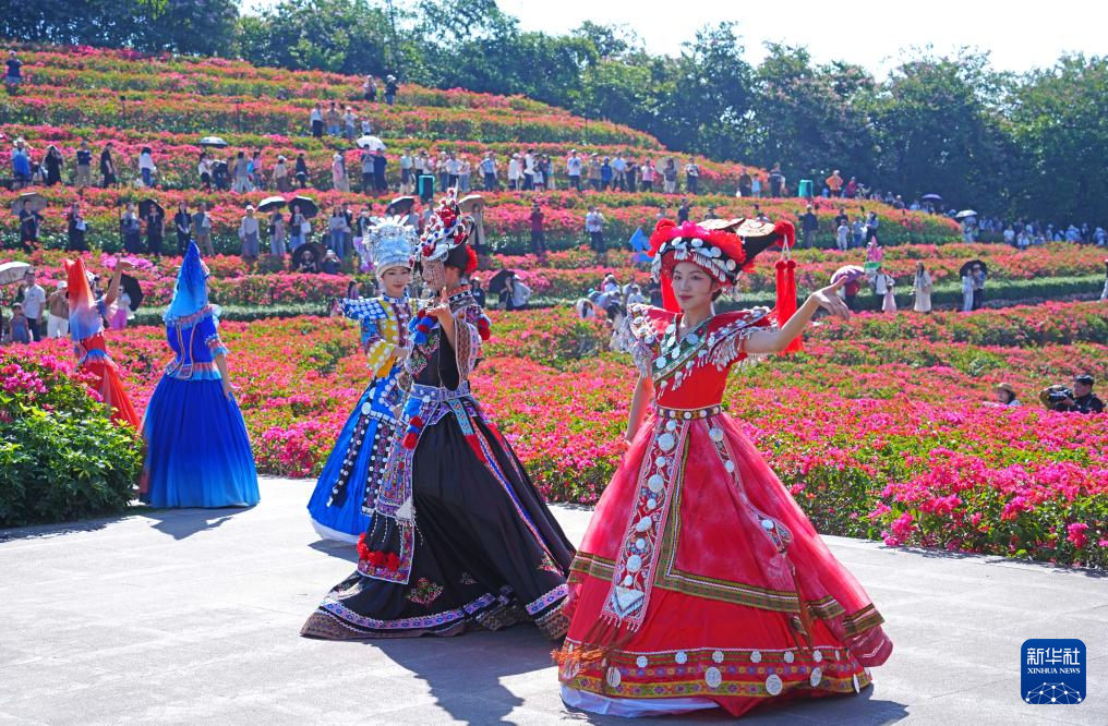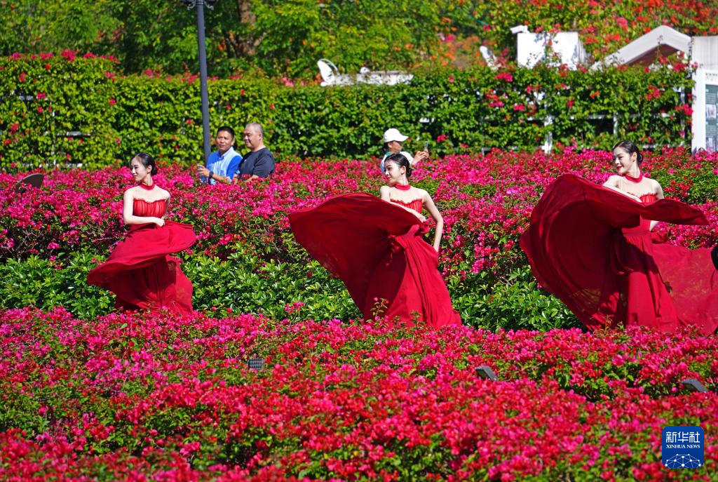 11月15日,演員在廣西南寧市青秀山風景區三角梅花園演出。