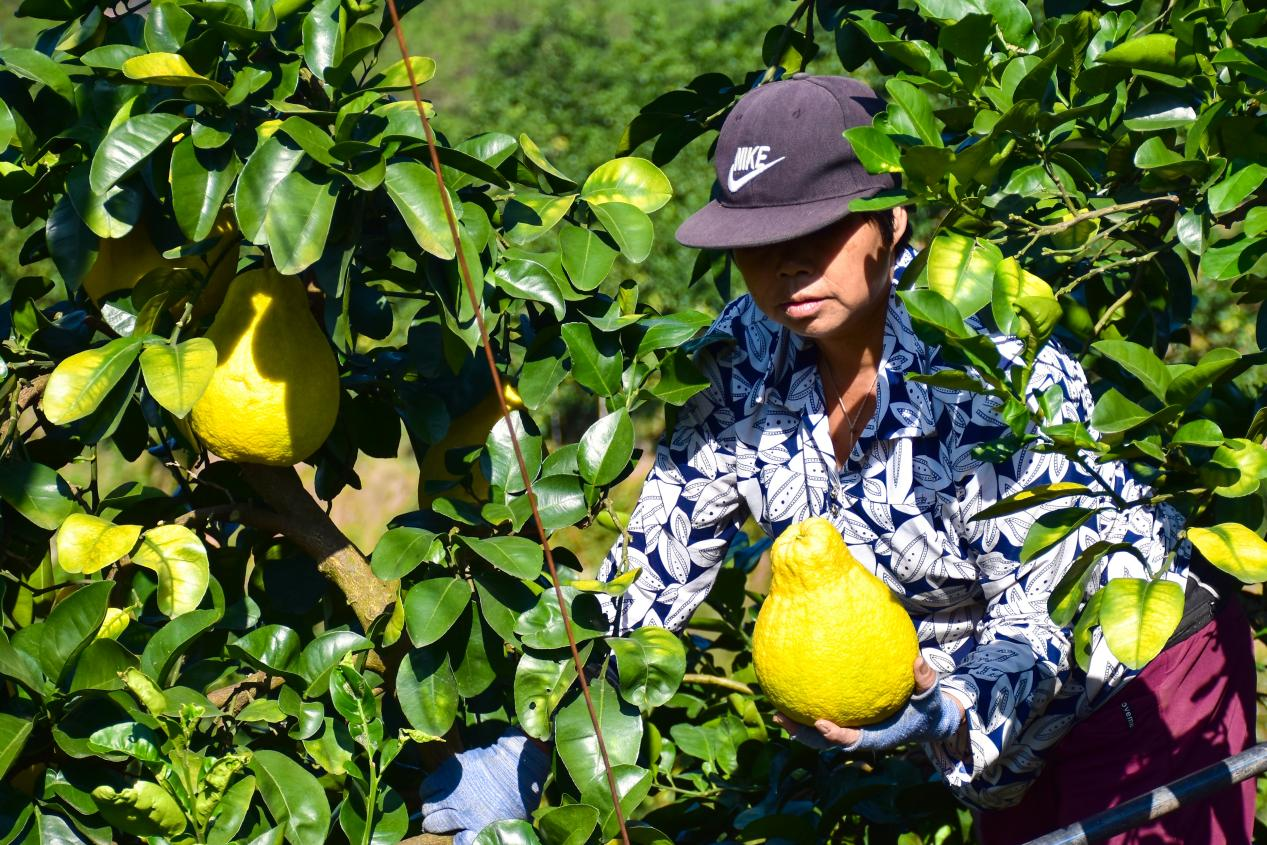村民正在采摘沙田柚