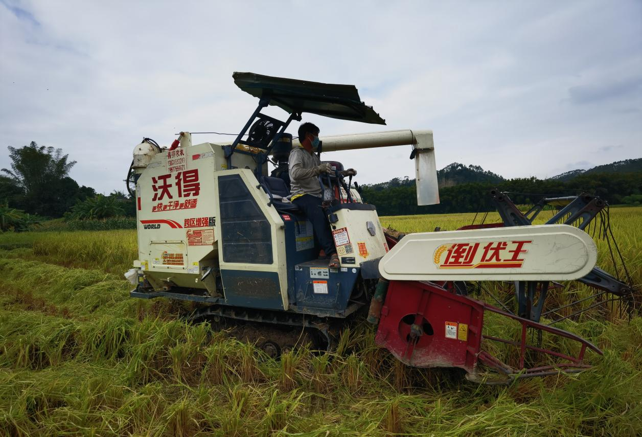 北流市水稻生產已實現全鏈條機械化覆蓋,從育秧、插秧、施肥、噴藥,到收割、烘干,每個環節都有機械保駕護航,全機械化水平近85%。在關鍵的收割環節,全市組織640臺高性能收割機提供社會化服務,每畝晚稻收割僅需10分鐘左右,高效快捷的作業模式大幅縮短了收割周期。今年34.82萬畝晚稻中,98%以上采用機械收割,不僅減少了人力投入和糧食損耗,還確保了稻谷及時歸倉、顆粒歸倉,有效規避了陰雨天氣等自然風險。
