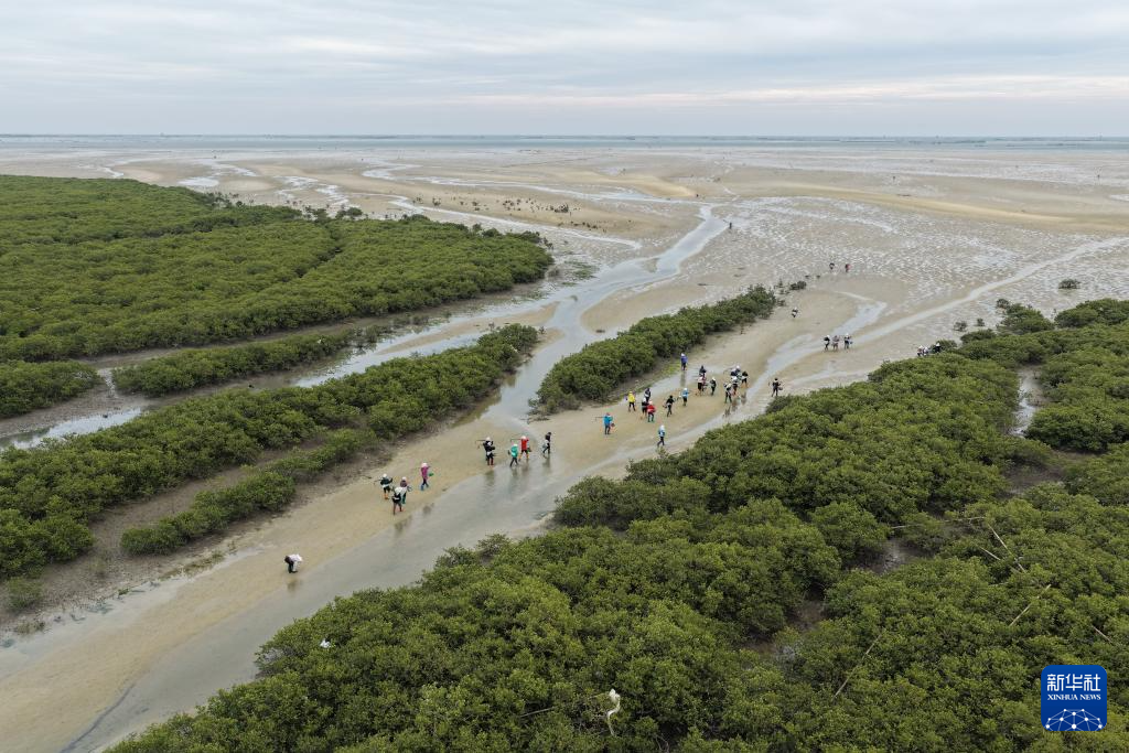 在廣西北海金海灣紅樹林生態旅游區內,3000多畝紅樹林宛如一片“綠?!?,白鷺翩飛,蝦蟹成群。紅樹林,這種扎根于海岸潮間帶的胎生木本植物,既可防風消浪,又能凈化海水,還為魚蝦鳥類提供棲息之所,素有“海上森林”“海洋衛士”之稱。潮水退去后,人們常常帶上趕海工具前往灘涂,尋找大自然的饋贈。