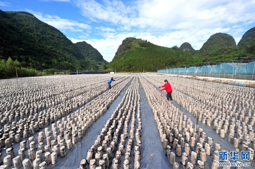 11月21日,農民在廣西河池市羅城仫佬族自治縣東門鎮大福村木耳生產基地勞作。