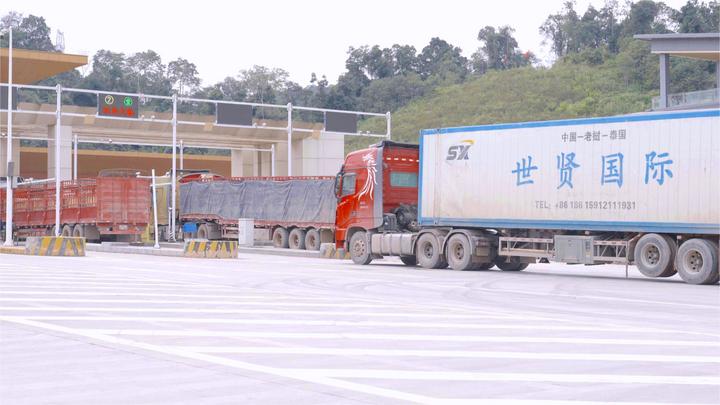 在云南省南部的磨憨公路口岸,一輛輛滿載貨物的貨車有序通過口岸卡口,駛往老撾、泰國等東南亞國家和地區。