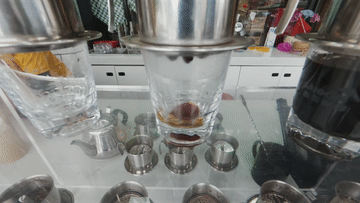 這家名為“西貢咖啡”的咖啡館,在此經營了10年。從一開始的一間小門面逐步擴建。2024年,為了讓中越游客感受到更豐富的咖啡文化,這家咖啡館內建成了一個咖啡博物館。各色的咖啡壺、一米高的老式咖啡機、咖啡農住的茅草屋……各類有關咖啡的展陳,讓游客更深入了解咖啡文化。