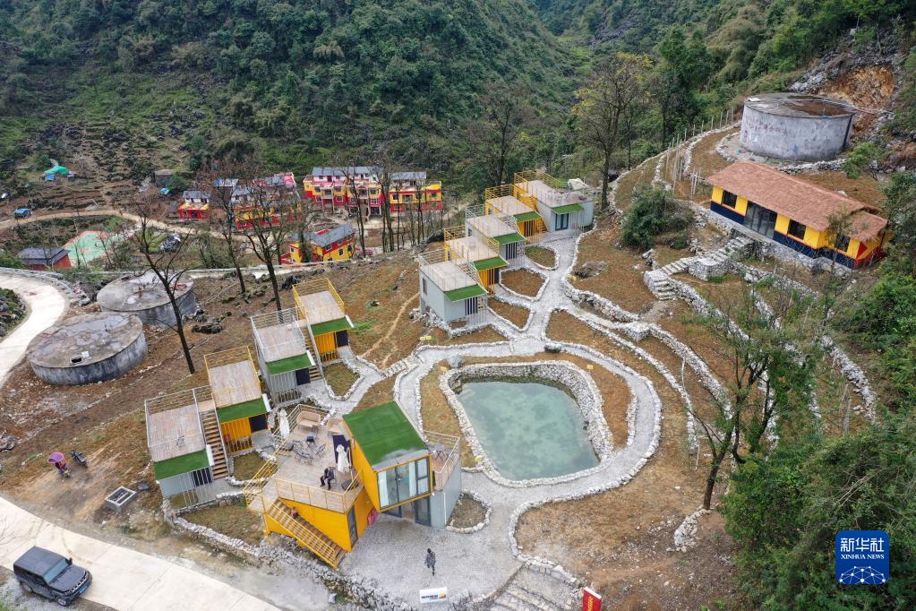 這是廣西都安瑤族自治縣隆福鄉大崇村龍布屯建設的民宿及村民住房(3月17日攝,無人機照片)。