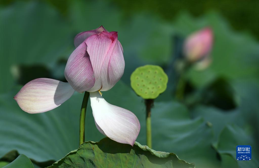 當日是大暑節氣,廣西南寧市南湖里的荷花迎著夏風綻放,荷韻悠悠,風姿宜人。
