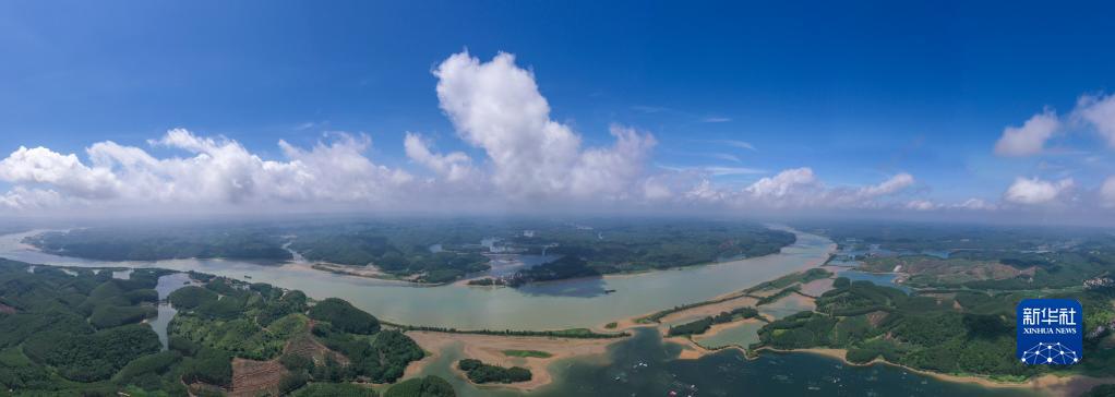 這是8月27日拍攝的平陸運河入口處平塘江口段水域(無人機全景照片)。