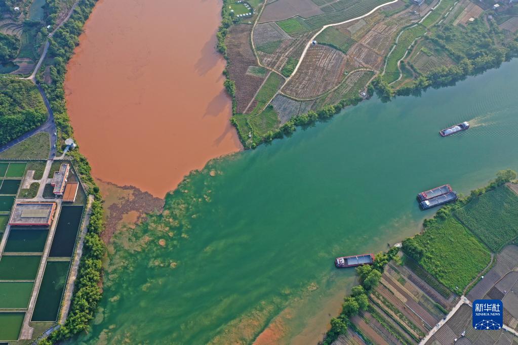 三江口地處廣西南寧市江南區江西鎮,左江與右江在這里匯合后成為邕江。受近日上游降雨影響,左江江水渾濁發黃,渾黃的左江水與清澈的右江水在三江口水域交匯。