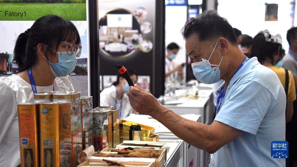 9月16日,一名觀眾在南寧國際會展中心韓國展館參觀選購。