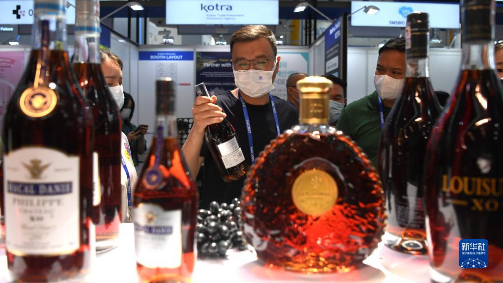 9月16日,在南寧國際會展中心“一帶一路”展區,觀眾在選購紅酒。