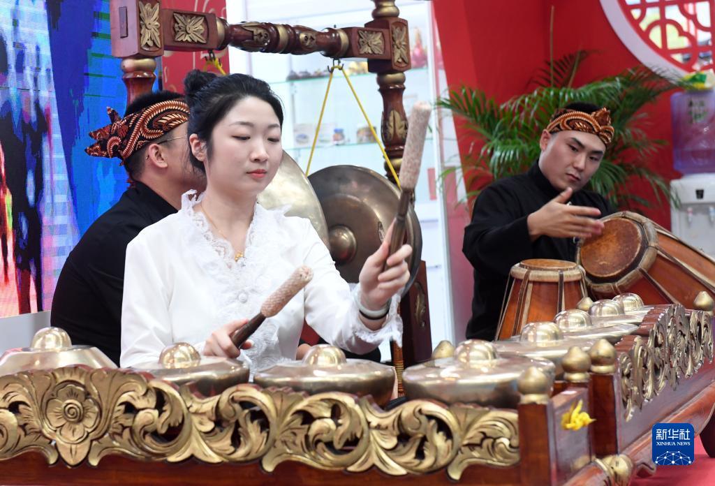 在南寧國際會展中心,演員在表演印度尼西亞文藝節目(9月16日攝)。