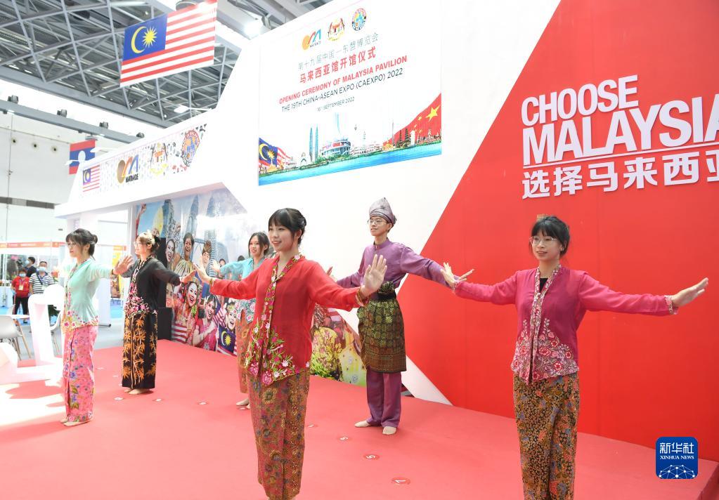 身著傳統服飾的演員在馬來西亞館開館儀式上表演馬來西亞舞蹈(9月16日攝)。