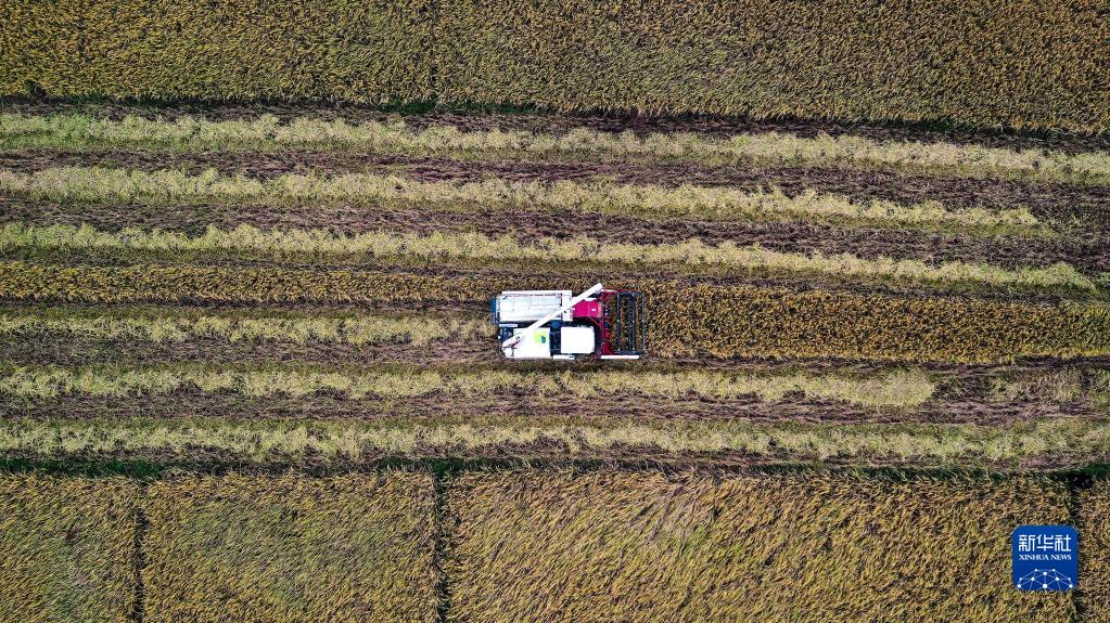 眼下,廣西欽州晚稻成熟,農民搶抓農時進行晚稻收割作業。