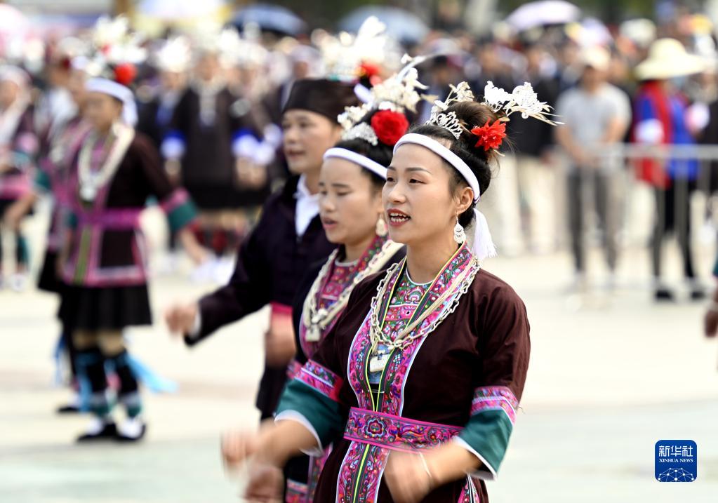 當日,廣西三江侗族自治縣舉行侗族多耶節活動,來自各鄉鎮的群眾參加多耶比賽,歡唱侗鄉美好生活。
