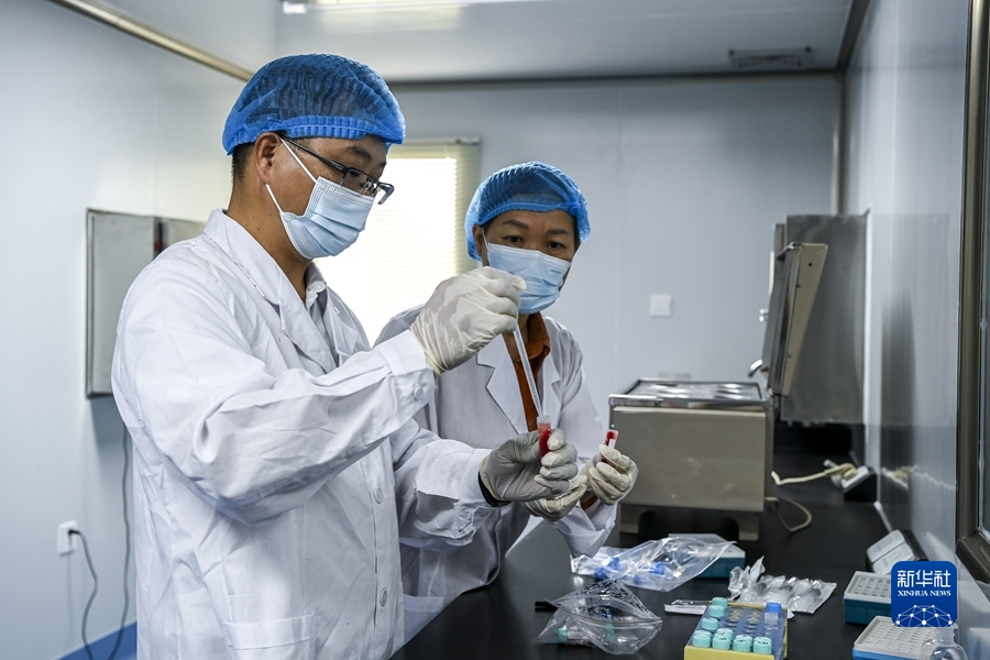 11月10日,在興業縣農業農村局實驗室,科技特派員對采集的禽類血液樣本進行化驗。