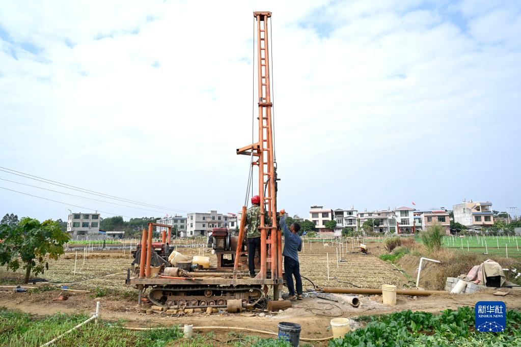 11月12日,在柳州市柳江區進德鎮四連村蔬菜種植基地,菜農在菜園邊打井取水。