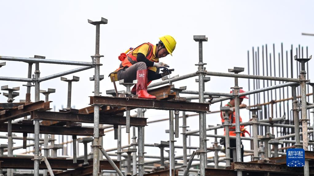 中鐵十一局的工人在玉林北站工地上作業(11月26日攝)。