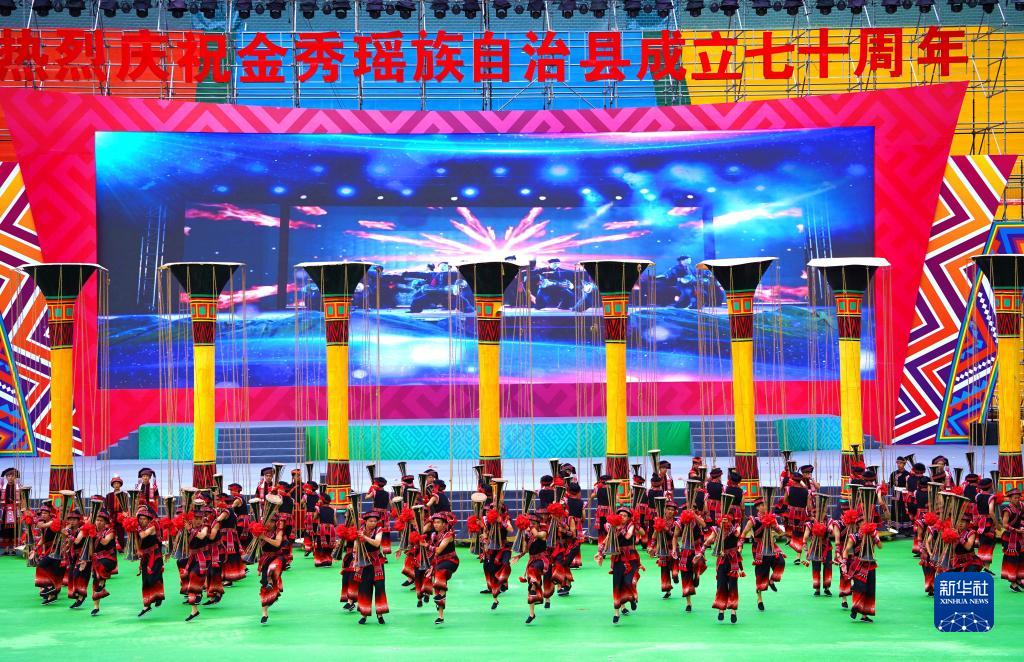 11月28日,廣西金秀瑤族自治縣舉行自治縣成立70周年慶祝大會,當地各族同胞載歌載舞慶縣慶。